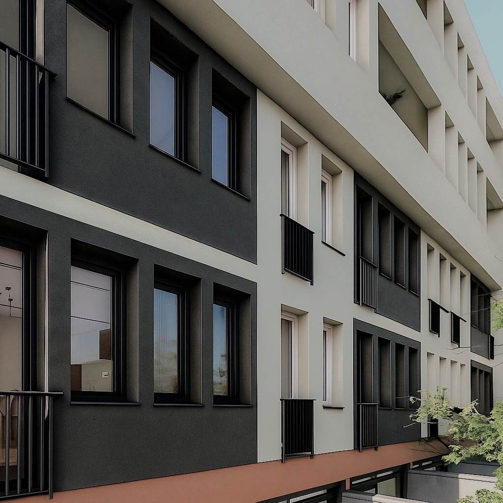 A négy szintes társasház felső két szintjén meglévő, már lakott lakások helyezkednek el, az alsó két szinten pedig az eddigi iroda (back-office) funkció helyett szintenként 13 db lakás kerül a kornak mindenben megfelelő műszaki színvonalon kialakításra.